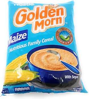 Golden Morn cereal is a nutritious breakfast option made from locally sourced whole grains, specifically maize, millet, and soya. It’s fortified with essential nutrients like vitamin A, iron, calcium, and protein, making it a great choice for both children and adults